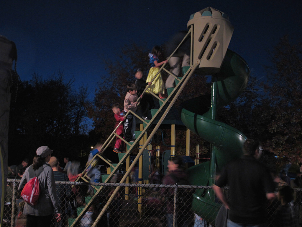 As evening arrived and the park filled with patrons, the kids formed a traffic backup at the big playground slide the likes of which we rarely see. |