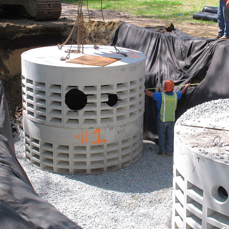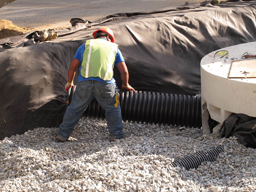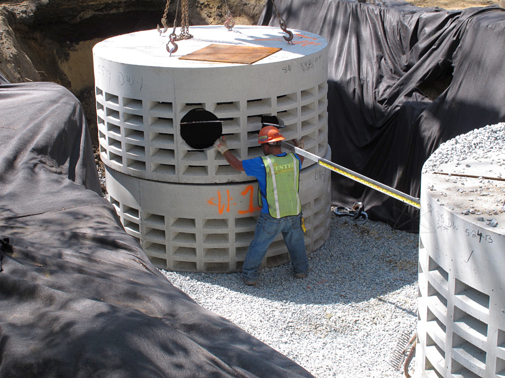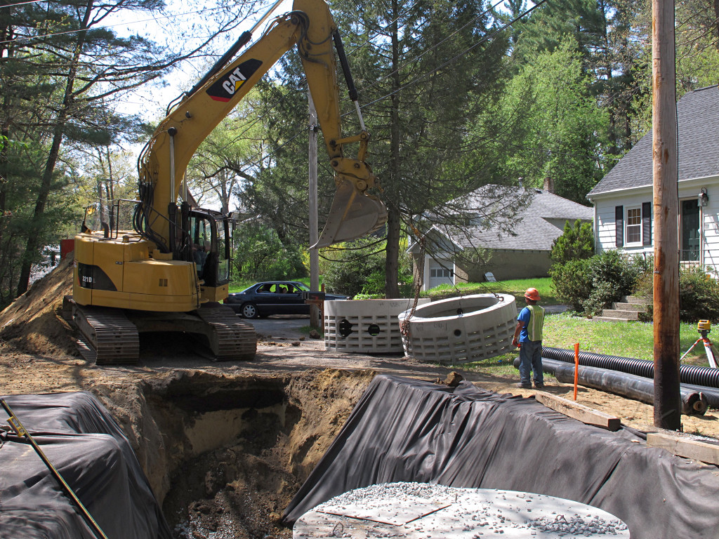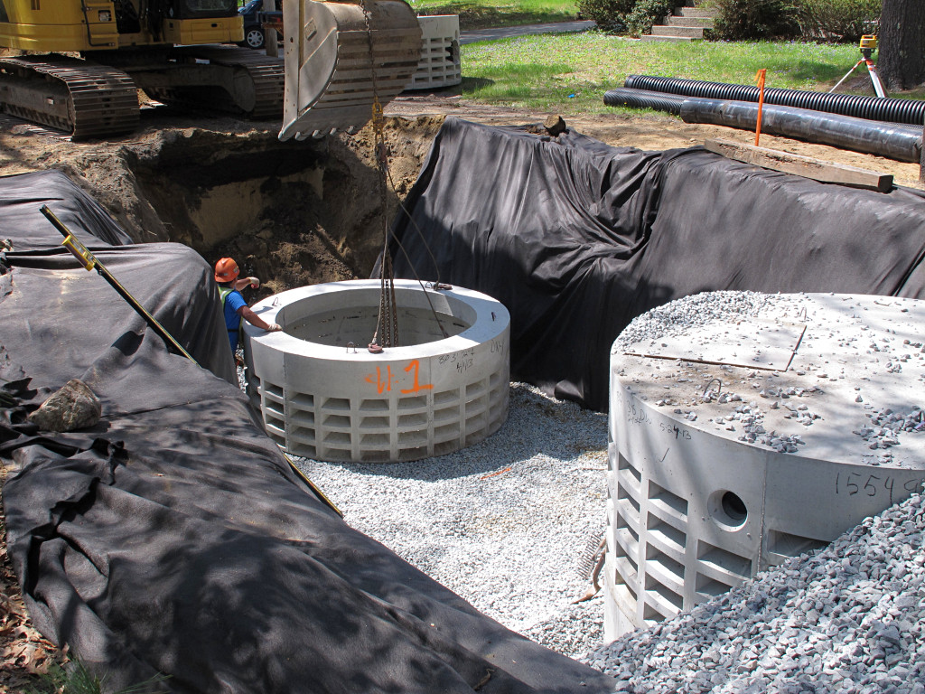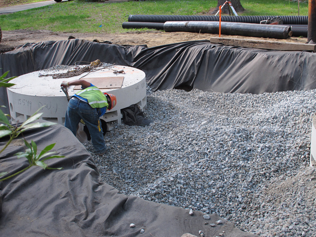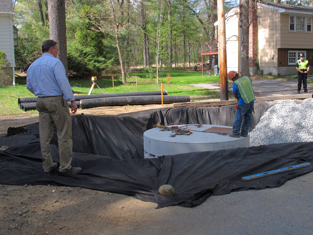With all the pipes laid in, the thing looked just like the design! Funny that. Except that there was probably a lot more drainage stone involved in this than anyone had predicted. |