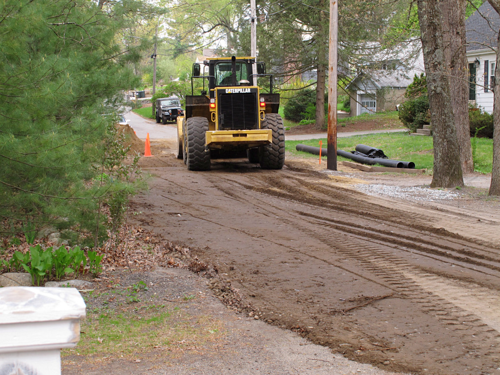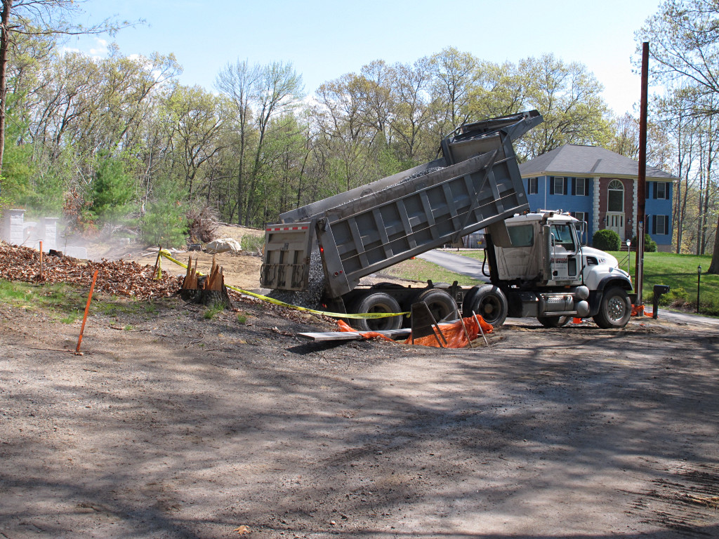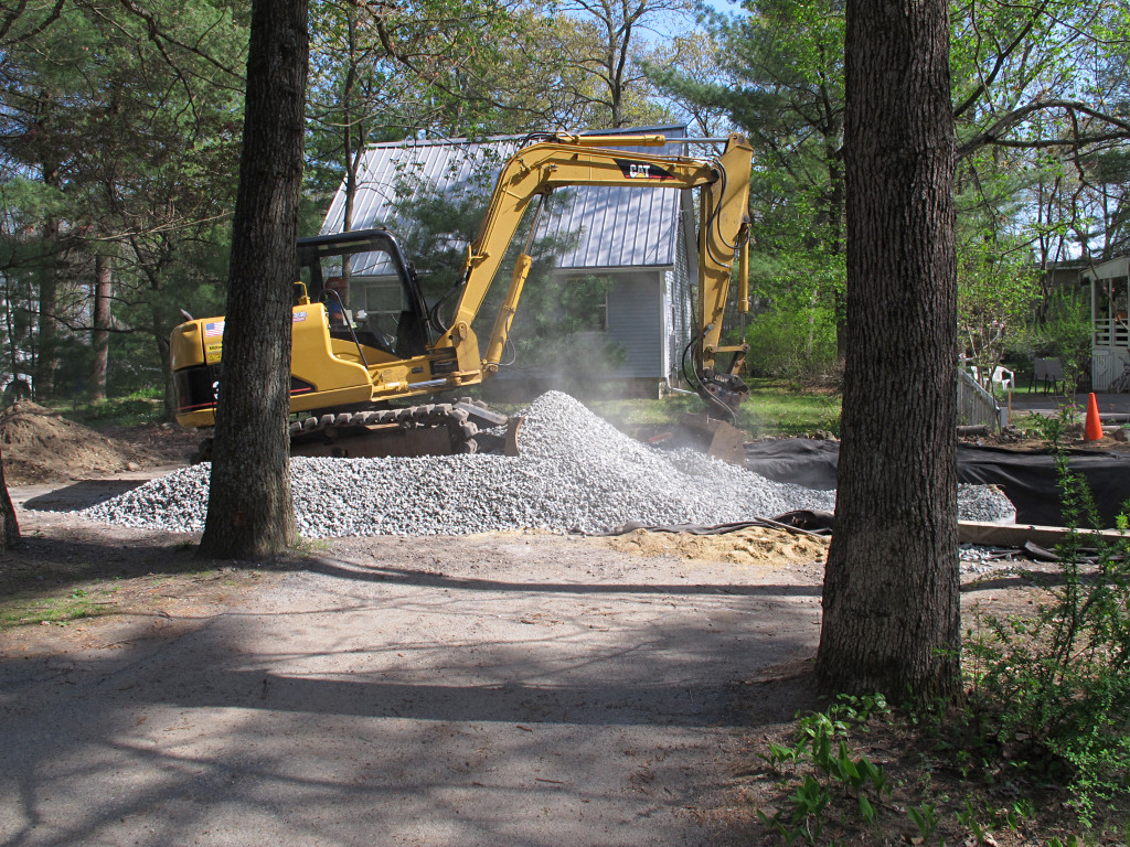 There was still a giant mound of dirt in the road, so one guy worked on loading and hauling three or four truckloads of that away while the other finalized the pit and the stone for regrading. |