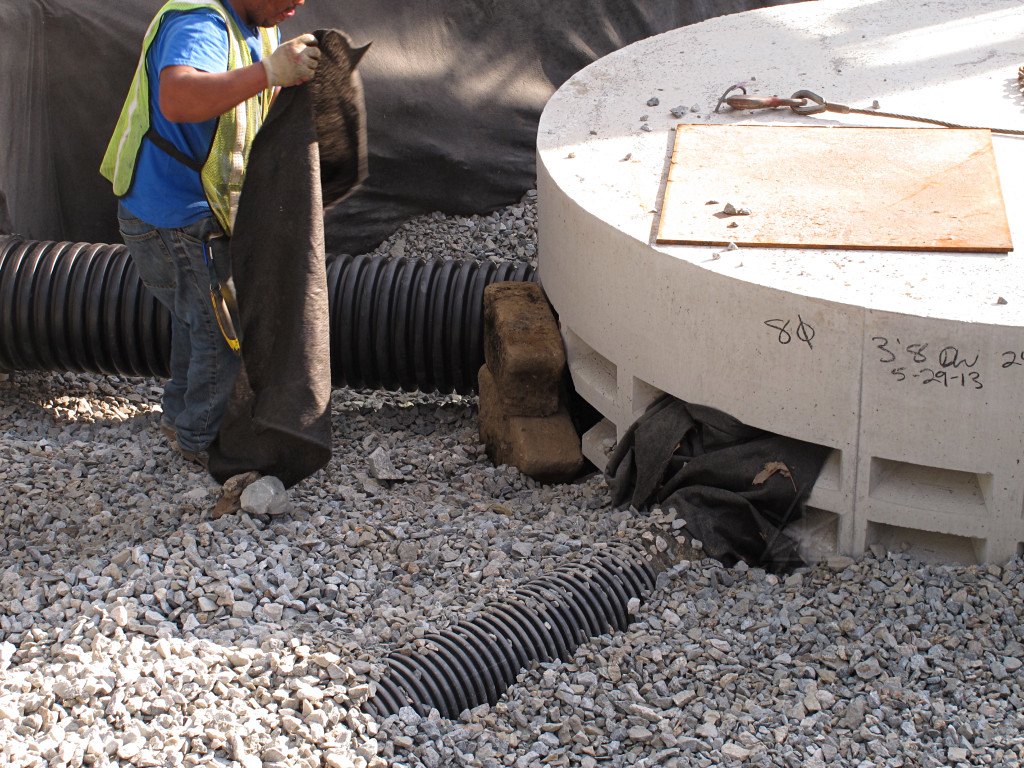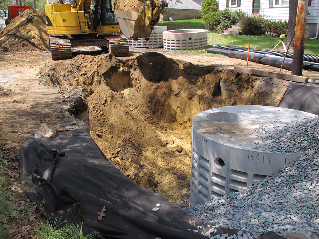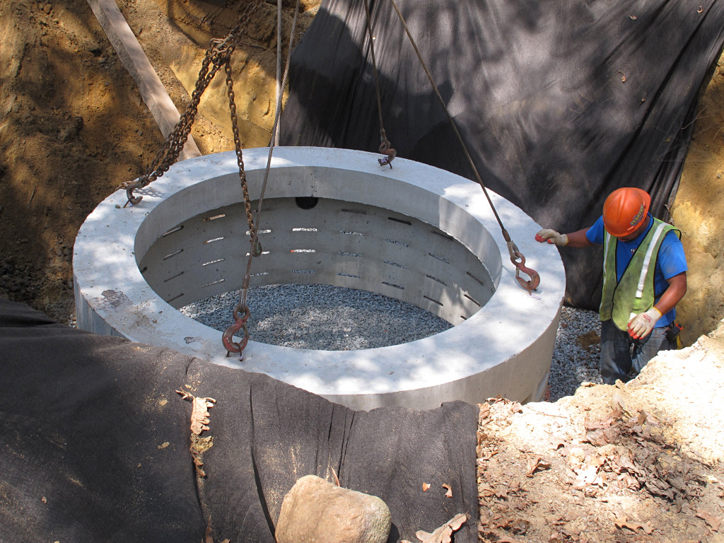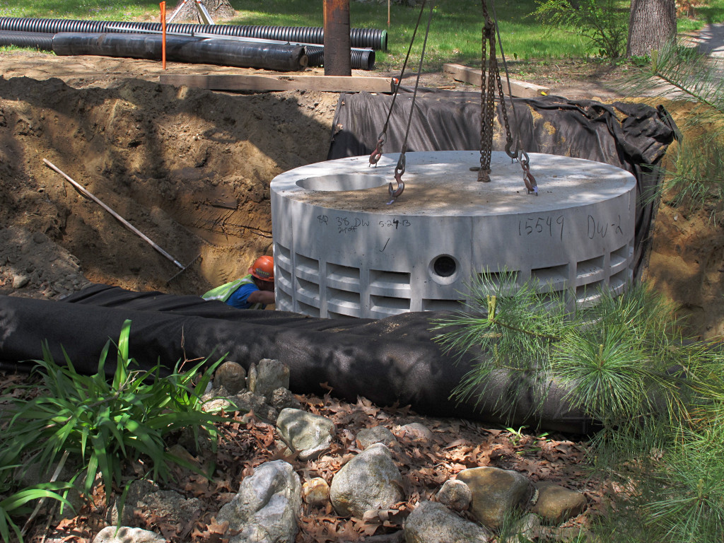 This immediately had me wondering if I should have done the same on my own little drainage pits. I'd planned for some silt accumulation area by placing the bigger rocks at the bottom but expected crap to come from above, not below. |