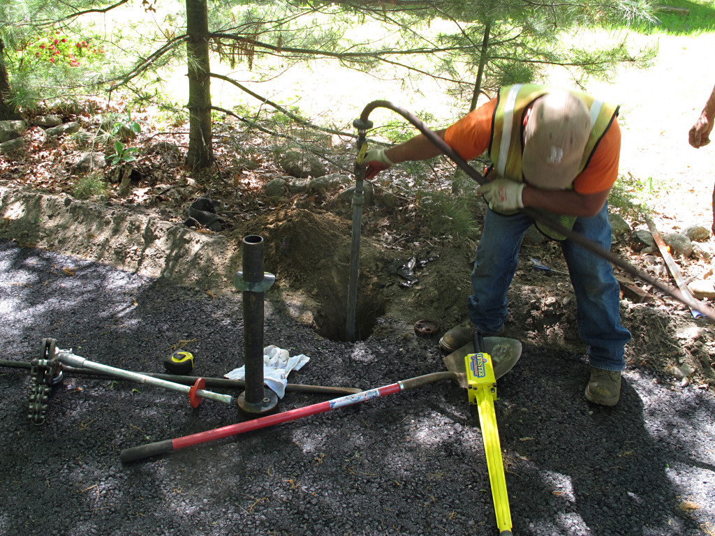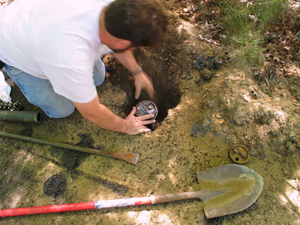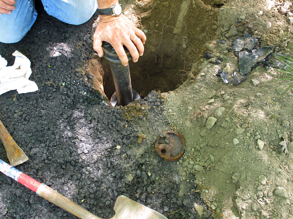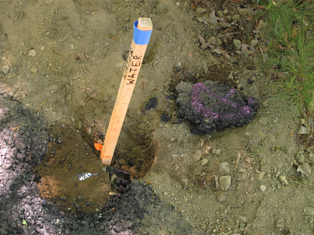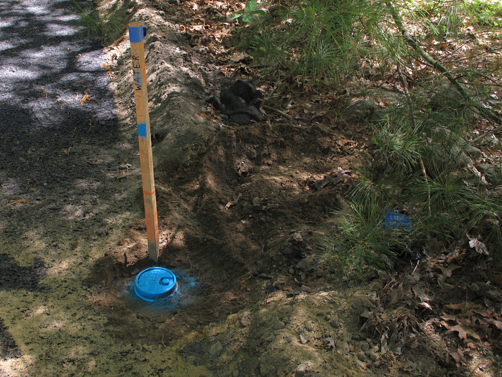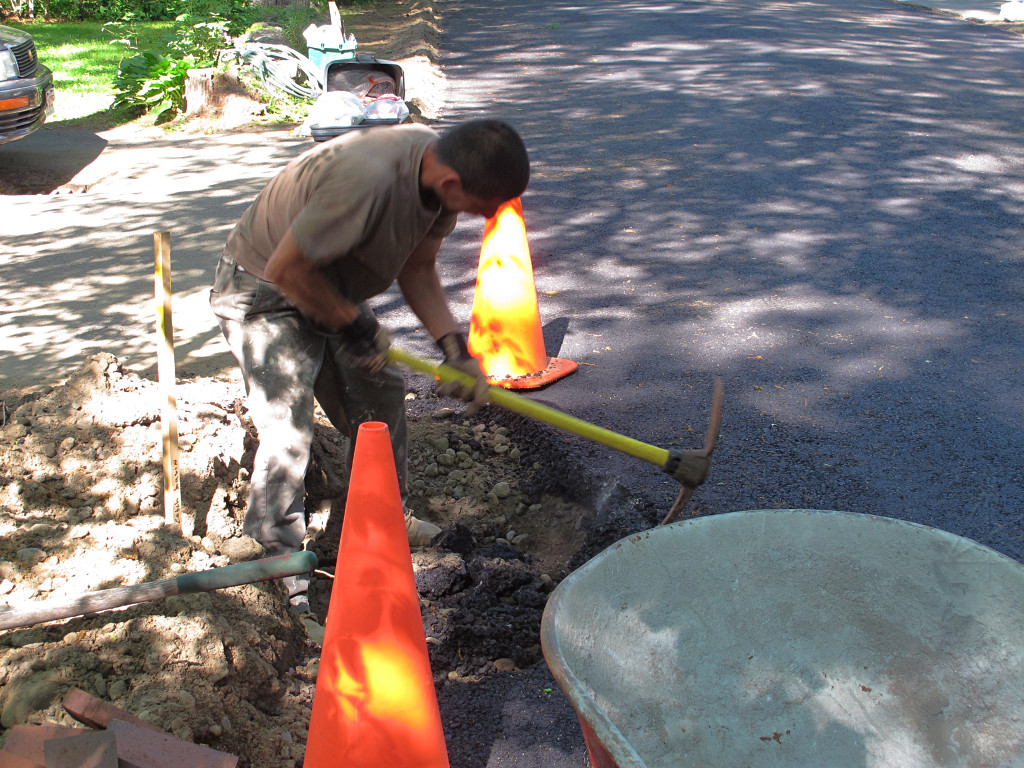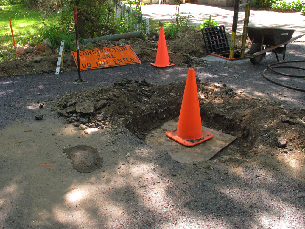 By this time the head of the water department had stopped by to look at my curb-stop situation, and said he'd send one of the guys over to come up with a proper fix. Said guy arrived only a couple of hours later and already knew what to do -- it wouldn't involve digging the entire thing out as I feared, he would simply extend the existing sleeve up to grade level and put in a new access cap *at* the final paved level like we see everywhere else. That way the shutoff would always be readily findable, say, in the middle of winter if there was a problem. |