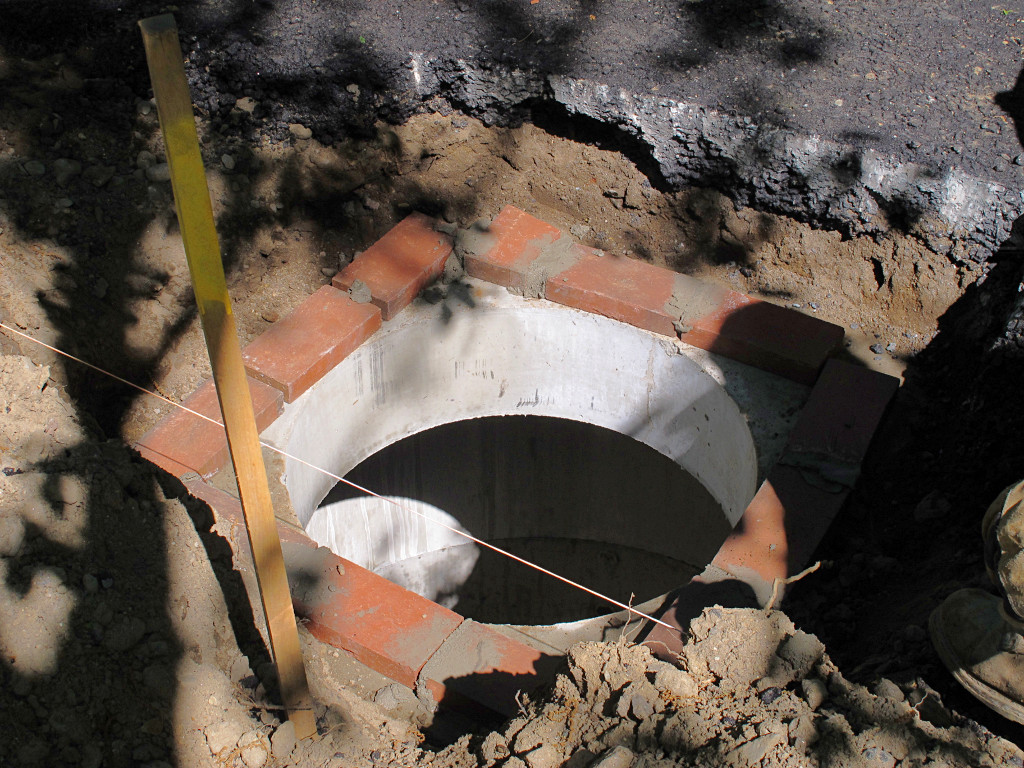 Once the bricks were mudded in, they were ready to support the frame for the catch grating. |