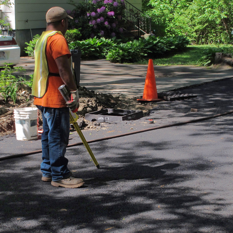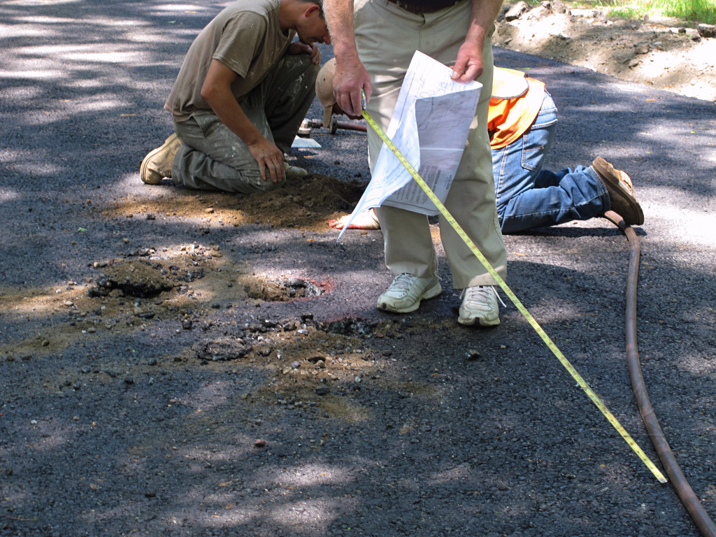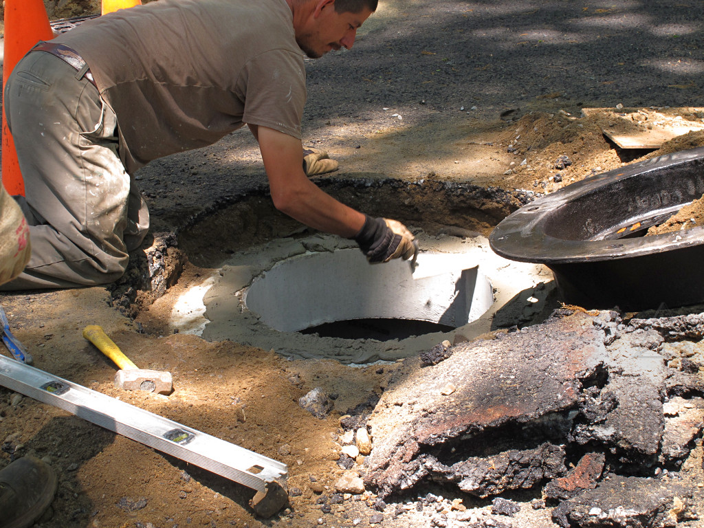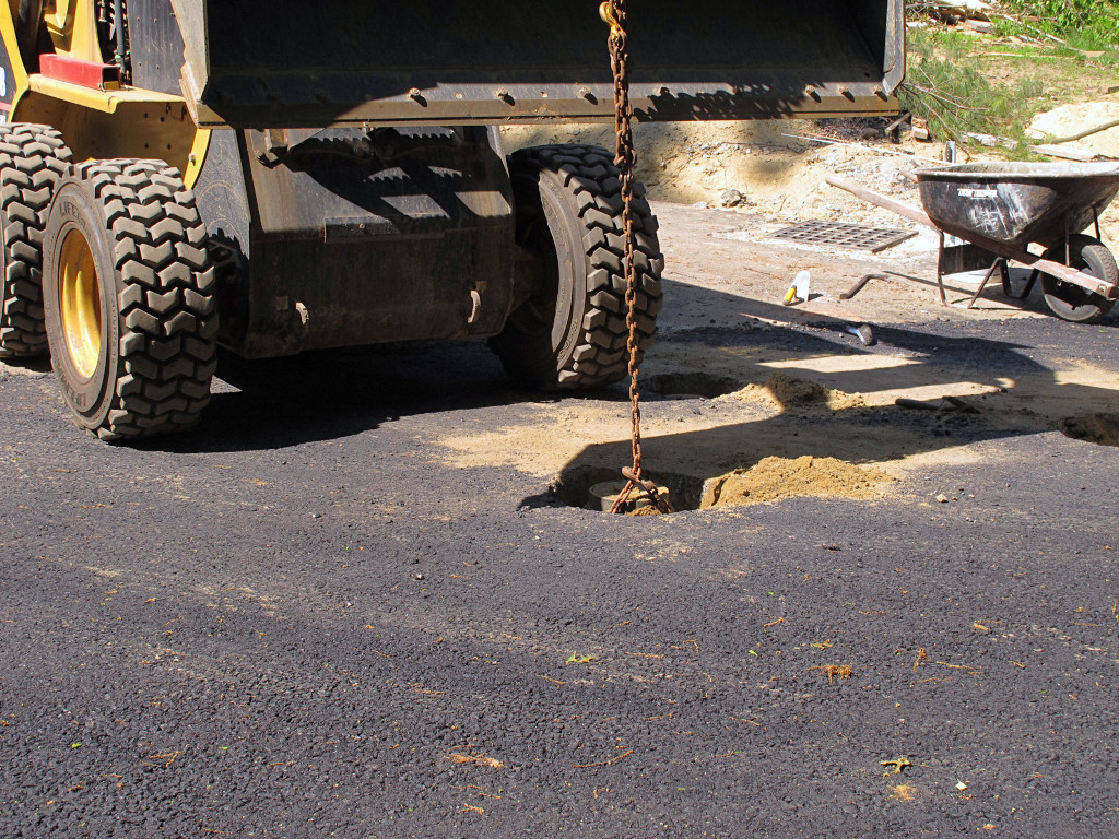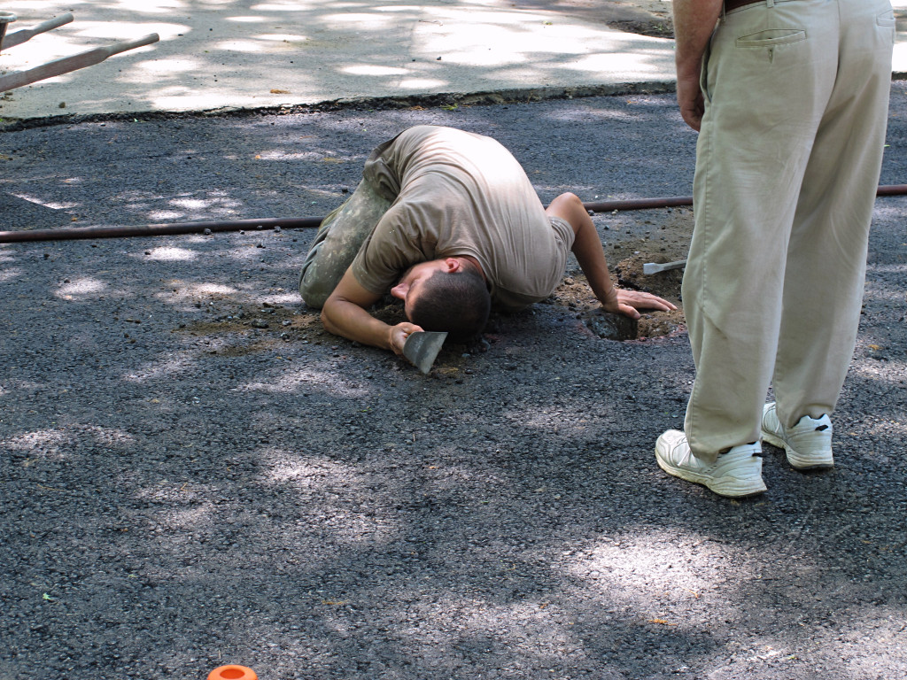 They finished out the day with a brief return to the water main junction, hammering out just enough binder to locate and raise the three valve boxes to the new grade level too. Not only was the locating procedure much more precise for these, the new sleeves could slide pretty easily and just needed a quick pull upward with a chain on the bobcat. These got cemented in as well and in theory, everything was ready for final paving. Whenever that would happen. Nobody really knew. |