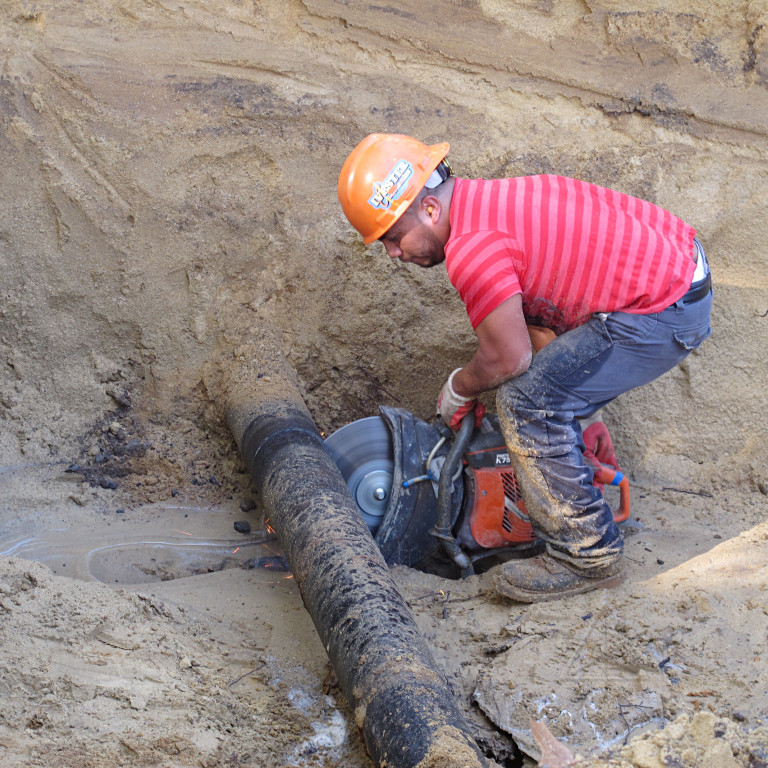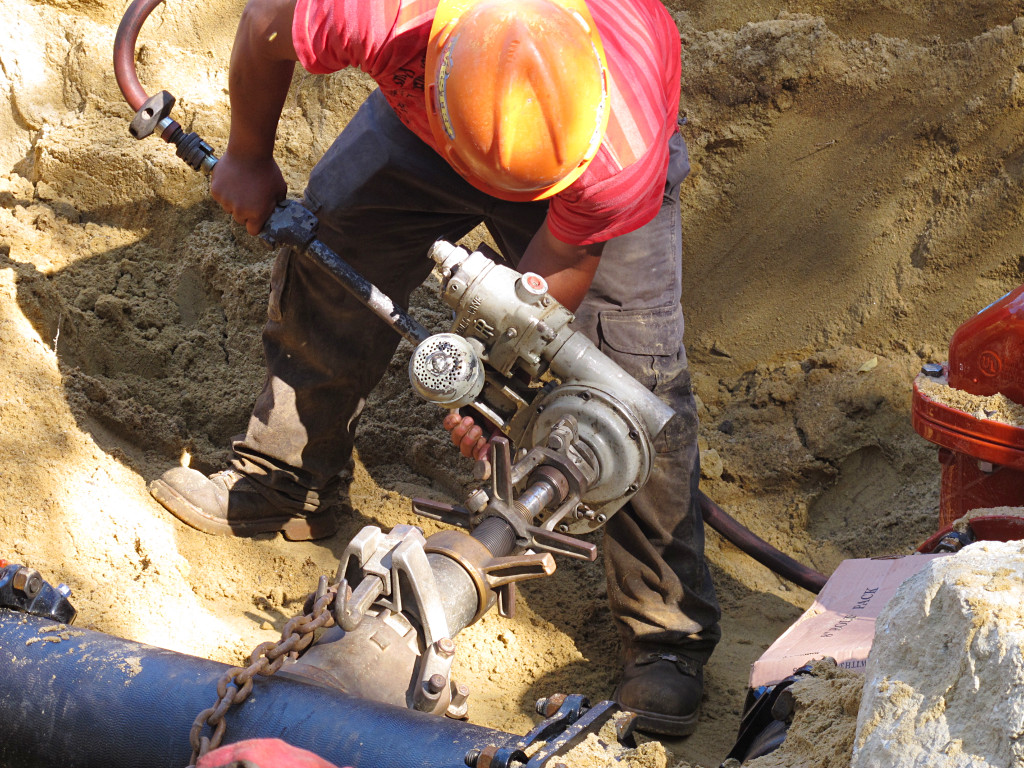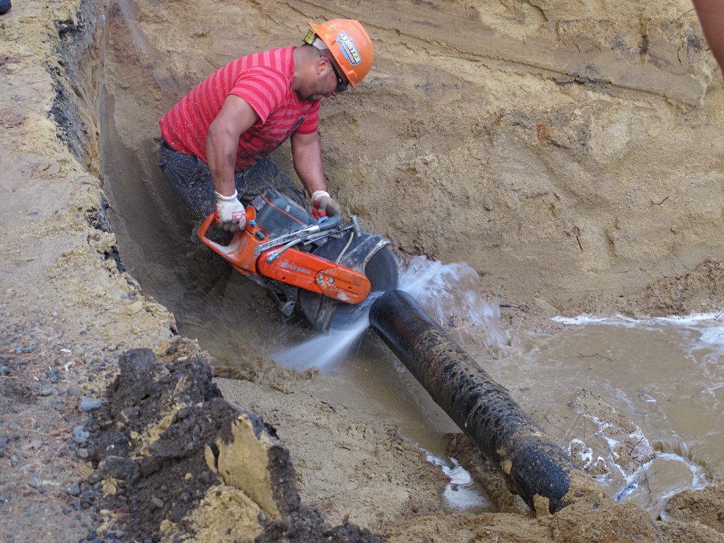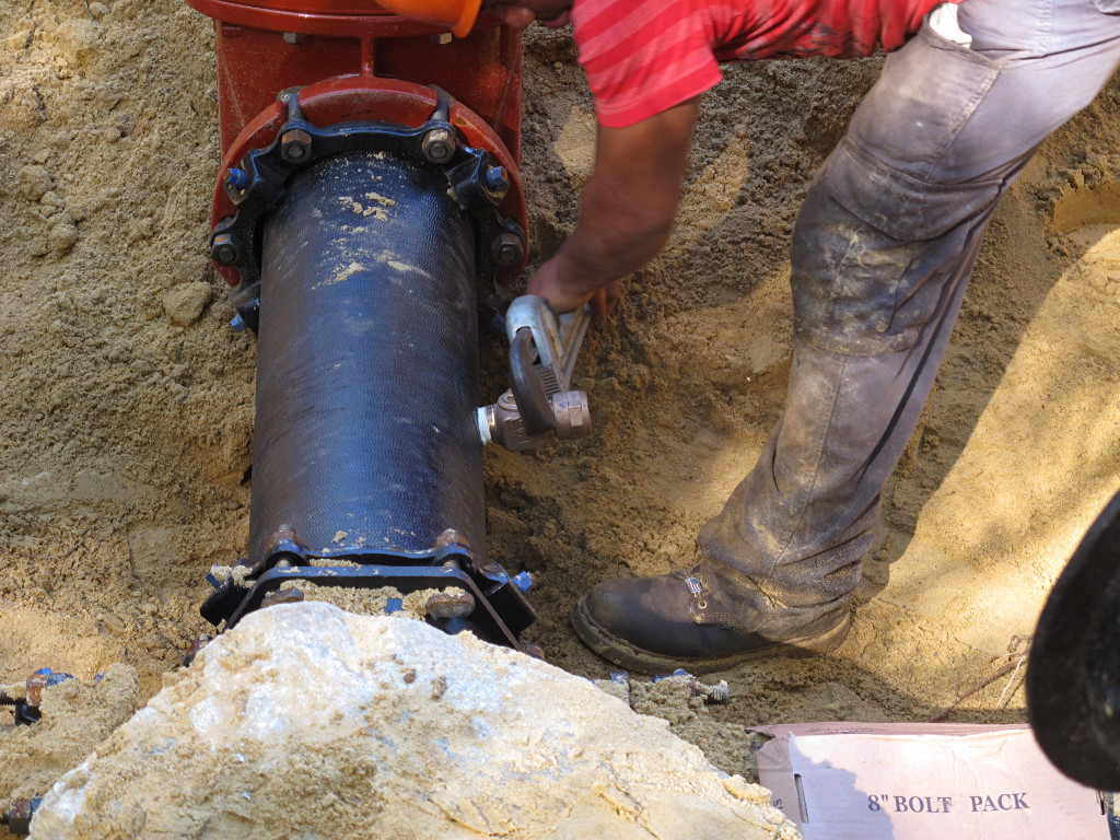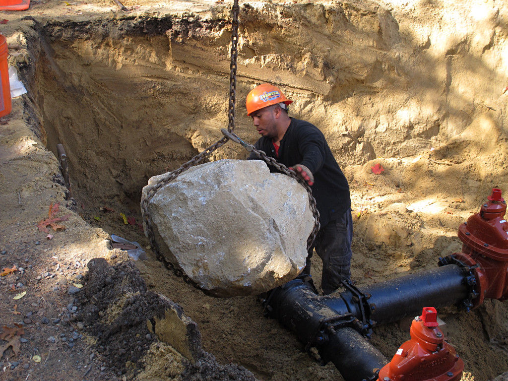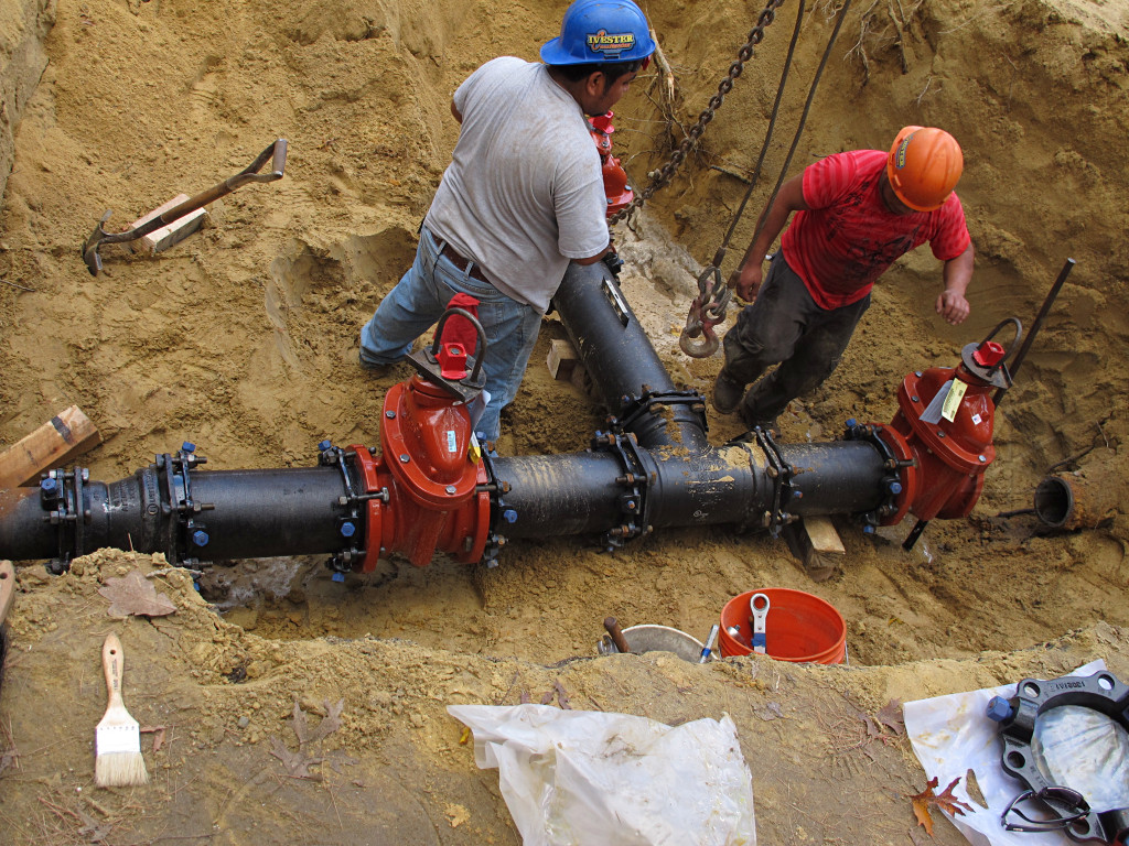 They had already pre-assembled the tee and three new valves in eight-inch pipe, which the backhoe now floated over from somewhere back in the site. |