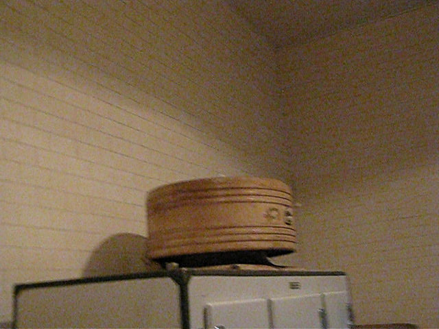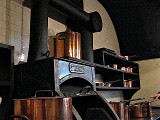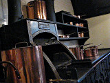 Back into the kitchen, but on the other side of the barrier ropes for a closer look at the stove and big copper pots. Our guide had us heft one; they're quite heavy. |