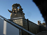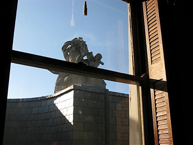 The statuary is carved as though it would be viewed from any angle, not just from below on the Elms grounds, and is all anatomically correct even on the backside. Evidently a reporter took this tour once and then wrote about the "best buns in Newport" being right here. One has to wonder how the service staff felt with these figures shooting them a perpetual moon. |