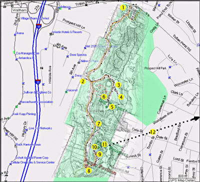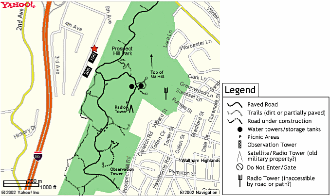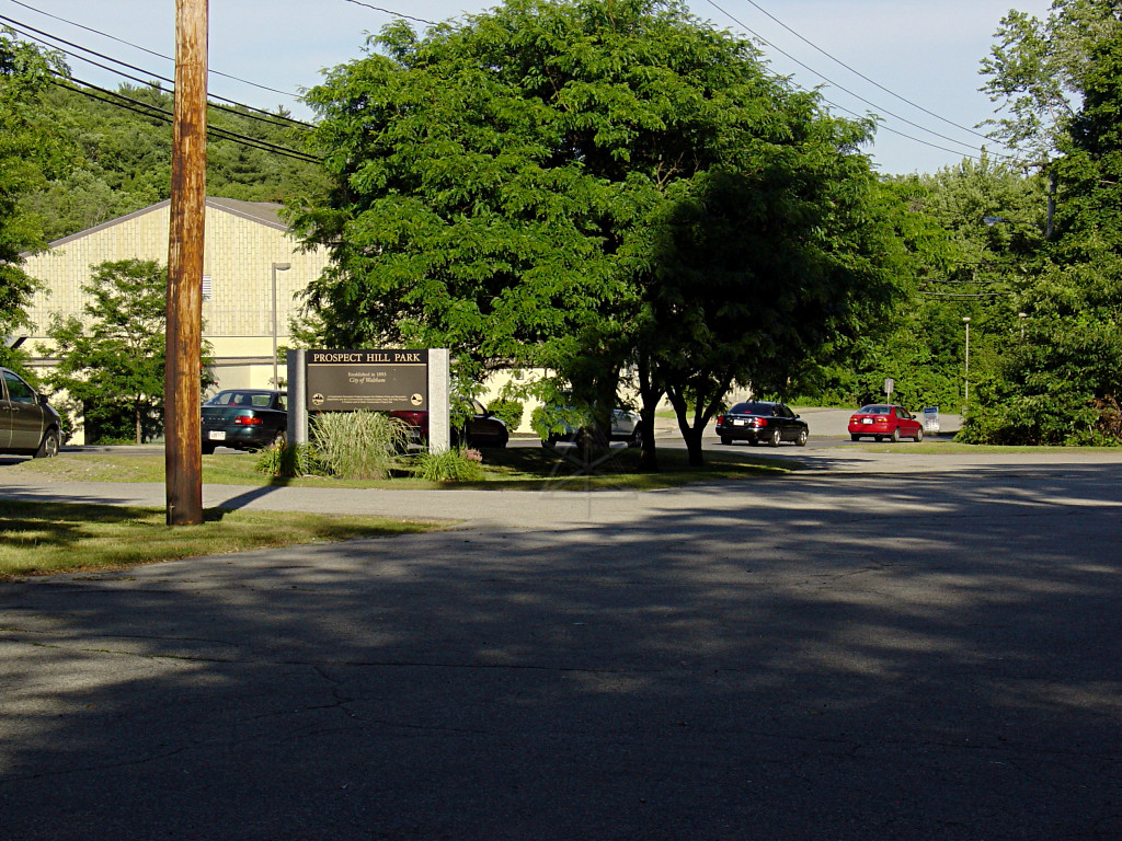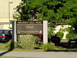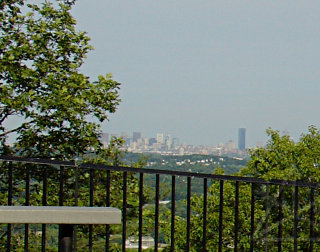 In advance of a Prius-owner gathering discussed here, I decided to go scope out Prospect Hill Park since I'd never been to it and it looked interesting. I was also having trouble believing that a view of Boston could possibly be had from a point that far west [it's just inside the 95/128 "beltway" at about 9:00 on the loop], especially considering that there's at least one large hill farther in, notably the one that Route 2 descends fairly steeply.