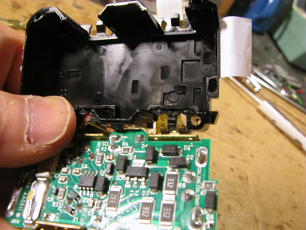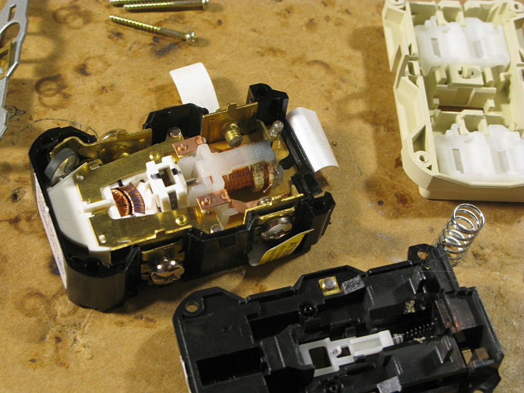 There isn't much under the outer faceplate; just the output contacts. The reset button has a strong spring under it and is very likely to pop out of whatever's anchoring it in there at this point. |