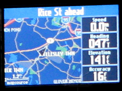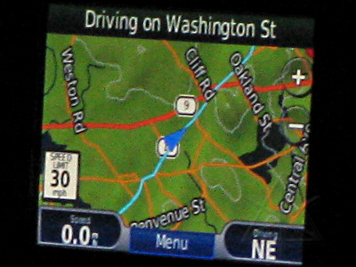 And if we're going to bother having street speed limits in the database and try to display them, how about having a configurable "over" threshold above which a configurable audio warning is issued, to help the self-acknowledged leadfoot drivers rein themselves in a little? Make it enabled at 7-over by default! The Nuvi running map, especially at higher levels of detail, seems incredibly noised up with denser contour lines and their numeric elevations, names of random nonessential side streets half a mile from where I am, and names of far more bodies of water than I need to know. All in text that's way too large, and don't think for one minute that there would be any *hint* of being able to set font sizes. [There *is* on the Quest, and for multiple item types!] And everything has a bit more trouble standing out from the terrain-shading in back, where the Quest's simple dark background [night mode] gives a much crisper display. In night mode, the Nuvi displays both streets and contour lines in almost the same pale grey, which can lead to some interesting confusion as to what's a road or not. The triangular pip indicating my position and direction has a tiny center dot on the Quest which indicates *exactly*, down to best screen resolution, where I am, and I use that all the time to figure out if I'm actually at a given intersection or not. The triangle on the Nuvi doesn't, or if it has a center mark it's subtle enough to be invisible and there's no other color option than the non-contrasty blue. If I use one of the other vehicle-shaped pointer types it doesn't have a center mark at all, it's just a splotch on top of the map. And when I try to set the simple triangle for all three "usage modes" it keeps later reverting to the idiotic default little car or pair-of-shoes or bicycle for some reason. Interacting with the static map brings out some of the most horrendous Nuvi design flaws and a couple of outright bugs. Tapping the map doesn't just go into slide-around mode and make the arrow cursor appear; the ENTIRE thing has to be redrawn even if you were already in 2-D view [which can take a while], and only then will it see taps to place the arrow or touch/move to slide the map around. When the 4-way rocker on the Quest is used, the arrow cursor simply appears right on the same map you're already on and movement proceeds completely sensibly from there. The Nuvi's response to touch/slide/release map movement is squirrely at best, often misinterpreting a slide as two or three more arrow-placement commands. Sometimes it leaves a broad stripe of map at a new incoming edge completely blank, never filling in the image until it's moved again. One slightly saving grace for the Nuvi is that invoking static-map mode *finally* starts displaying a few nearby town names. As soon as map-movement mode is invoked on the Quest, a bar along the bottom immediately comes up showing current cursor lat/long, and distance and bearing from the position pip to it. That leads to an intuitive workflow of moving to another place of interest and immediately seeing "aha, that's half a mile to the east" without doing anything else. No such display on the Nuvi, which seems reluctant at best to deal with coordinates much at all, and worse, once you've moved or slid over to a point of interest and see it get a label and a highlight, you can't *do* anything with it except save it or try and auto-route to it. This has to be one of the biggest annoyances, because on the Quest there's an "OK" button which immediately brings up all the details it has on a given highlighted POI that the cursor is sitting on. If it's over multiple POIs stacked on top of each other, which often happens even at high zooms in cities, the Quest will offer a little submenu to ask which one you're looking at and then give you all the details on what you select. There's no way to sort them out on the Nuvi and see the list of, say, all the different companies in a mini-mall or typical small-town office building. The Nuvi also tries to highlight things at ridiculous distances away from where the arrow cursor actually is, where the Quest allows much more close-in selectivity and it's perfectly okay to be pointing to empty space as heck, when you're standing there 40 feet off the road staring at the geocache you just opened up you might actually want to capture that exact spot for some reason. Once you've moved the arrow cursor to a new location, an obvious common task would be to search around that immediate area for whatever's needed. On the Quest, the "find" button brings up various options including "near map pointer", and goes into the standard categories menu from there. I cannot imagine the number of times I've just wanted to scroll around a map and randomly browse restaurants, campgrounds, auto-parts stores, or whatever and look at their details -- address, phone number, etc -- without an ill-conceived user interface getting in my way to prevent it. There's no "ok" or equivalent "look at this" button on the Nuvi, so it stonewalls my efforts to get detail on anything I see unless I save it to "Favorites" and then exit all the way out to the top level [thus losing where I scrolled to!] and go through "where to" and "favorites" and hope I remember what the thing was named. Then I have to clean up the mess it made forcing me to drop more unnecessary turds into the Favorites memory. If there's a faster/better way to do any of this on the Nuvi, it certainly isn't obvious or shown in the owner's manual. If the sat-radio is turned off, another method to obtain coordinates on an arbitrary location seems to be "set loc" to warp the position pip there and then touch it, whereupon it assumes that the only things you need to find from there are hospitals, police stations, and fuel. But you at least get a pair of coordinates in the little "my location" box. Of course if you then save that location, the coordinates get stripped away in the process. Garmin has thrown 